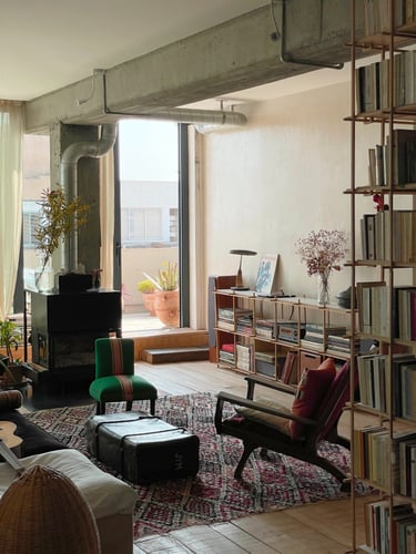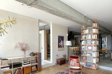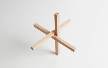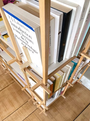A lightweight wooden grid that adapts to any room. A single system that becomes shelving, workspace and spatial rhythm.